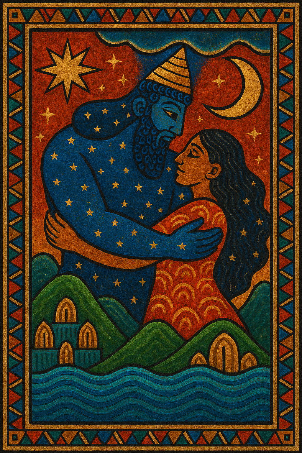 A divine, eternal love that bridges the heavens and the earth, uniting opposites in perfect harmony.
