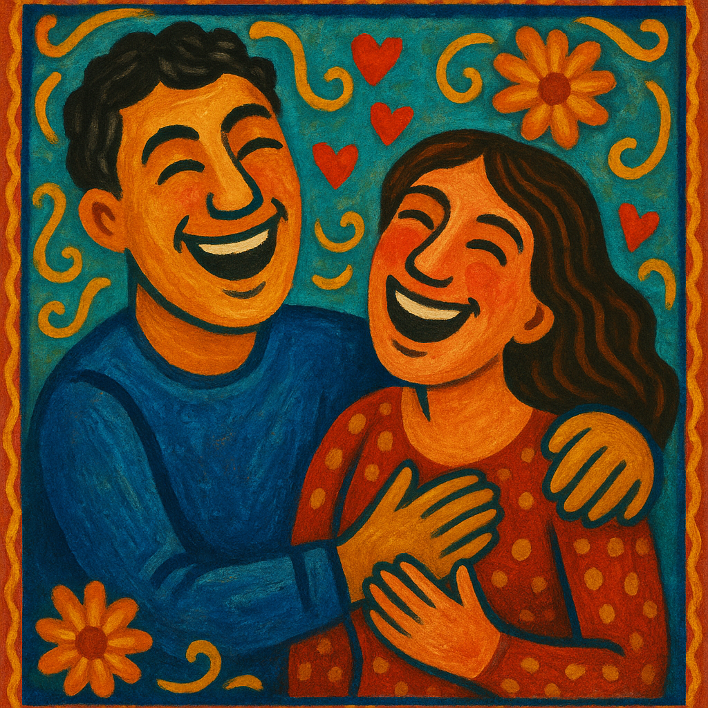 The bright sound of mirth between lovers, the echo of joy in the simplest moments, a love that finds its deepest expression in shared amusement.
