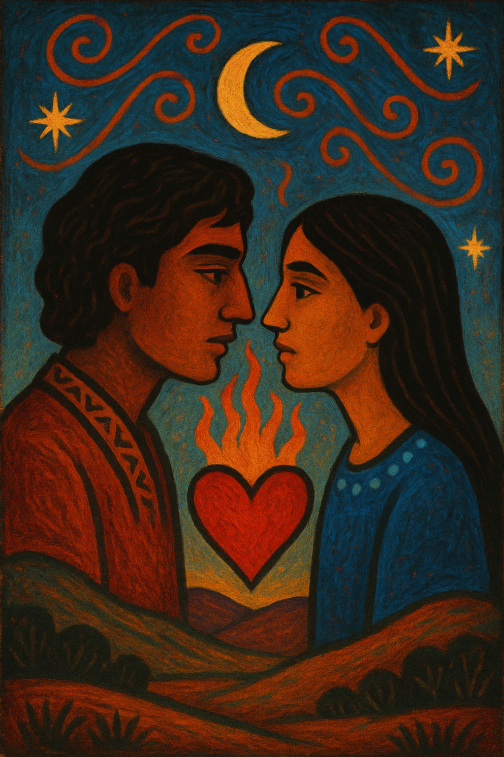 From the nearly lost Yaghan language of Tierra del Fuego, Mamihlapinatapai is a word that captures the quiet tension of longing, where both lovers wait for the other to move first. It is the gaze that speaks volumes yet remains unread, the love that hovers in uncertainty.